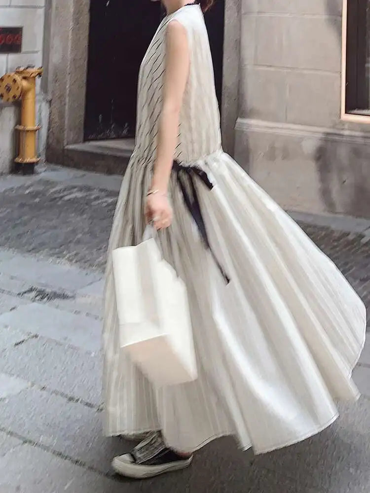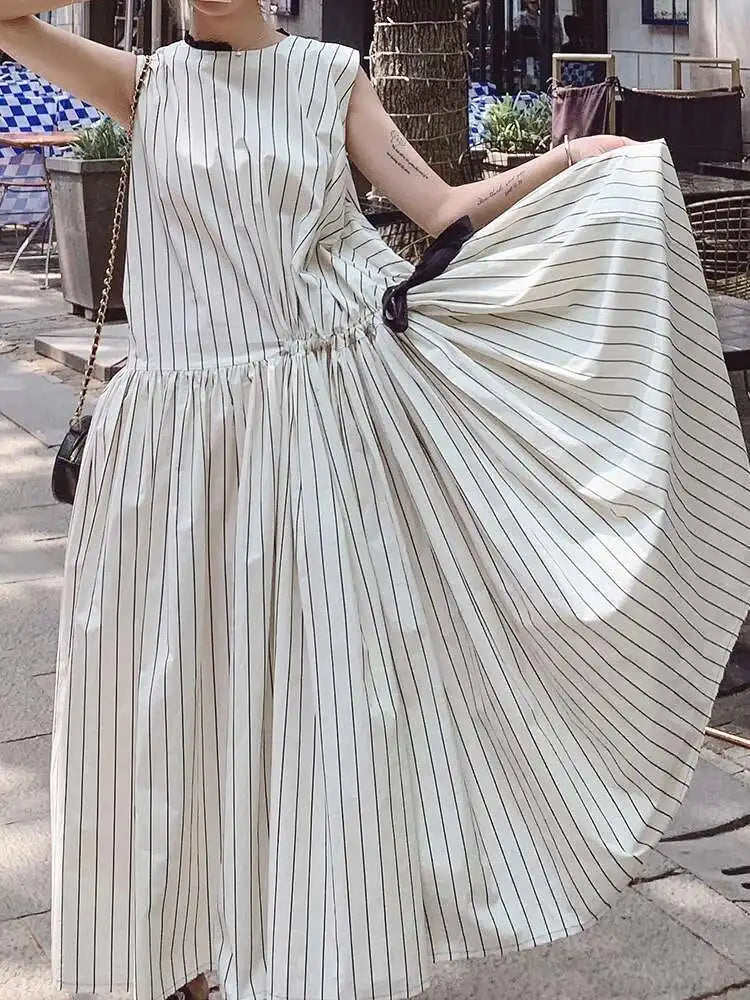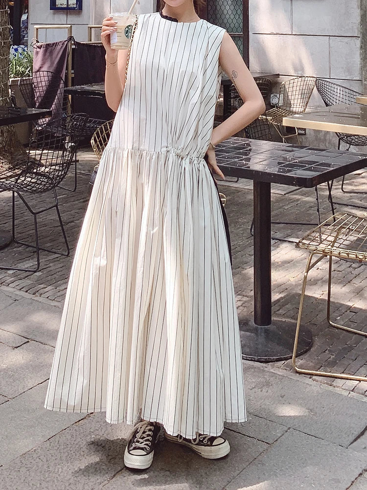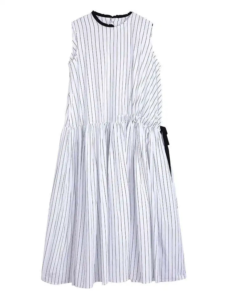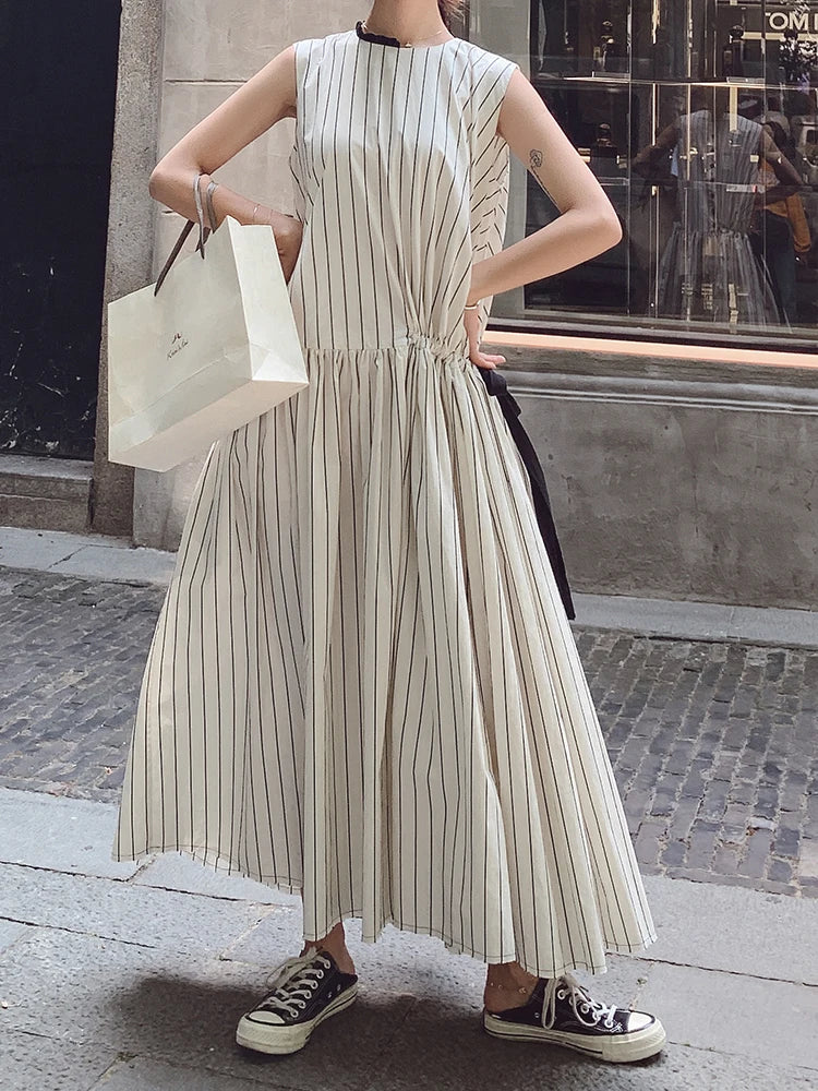 Cotton Sleeveless Striped Dress with Button Back