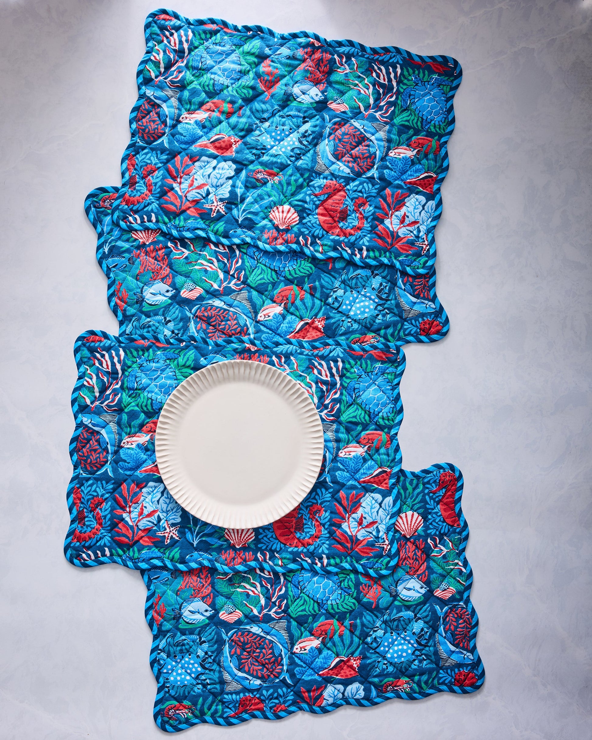 - Really wow your diners. Includes four quilted scalloped placemats.