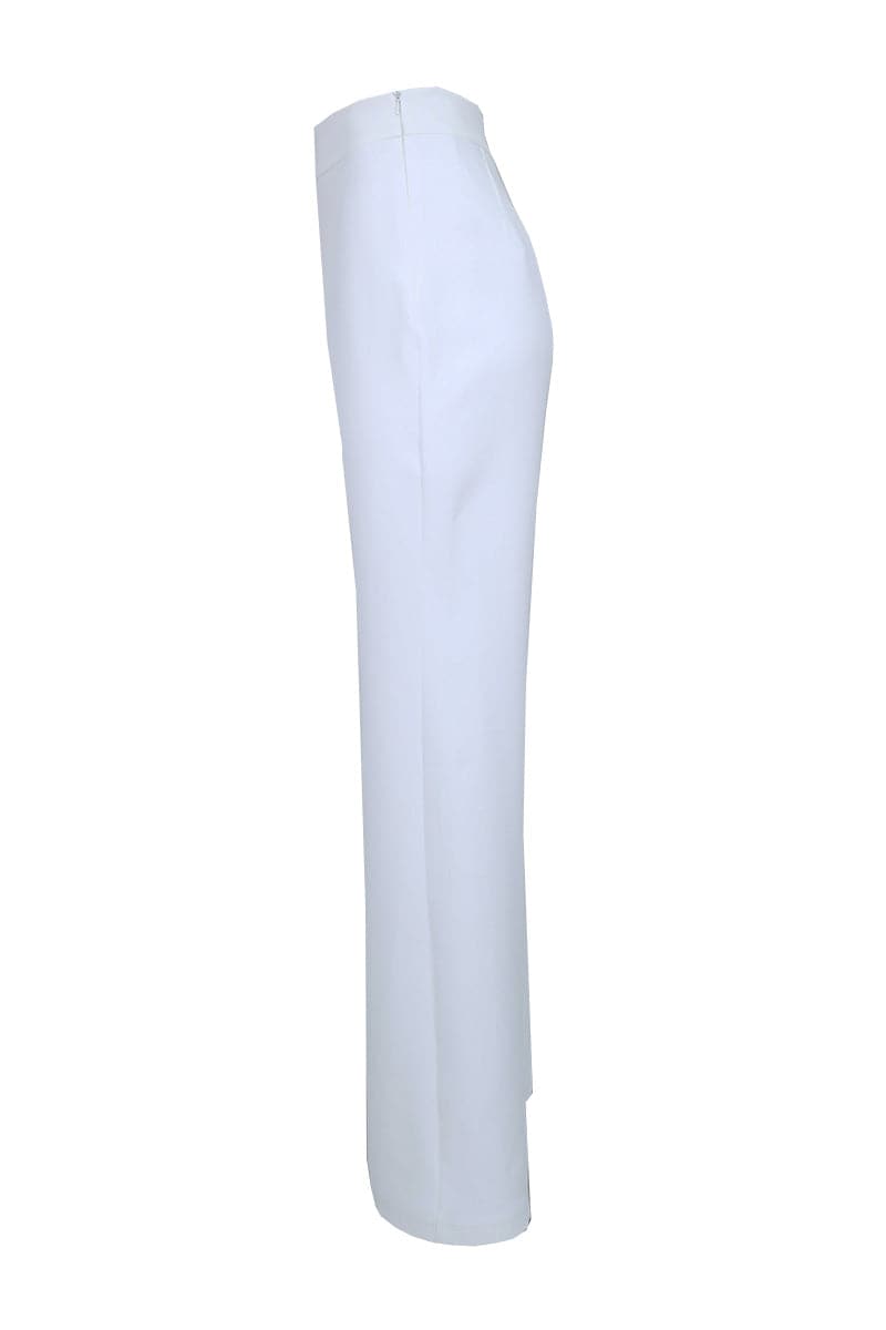 This strapless bridal suit is ideal for brides seeking to showcase their neck and upper torso. It's a canvas ready to highlight your exquisite bridal jewelry, making it the perfect choice. The blazer's tailored cut provides a structured silhouette, flattering the waistline with its front fastening. Paired with high-waisted flared pants, it creates an ensemble of enduring elegance. These versatile pieces offer a multitude of styling options, ensuring a look that's uniquely yours.