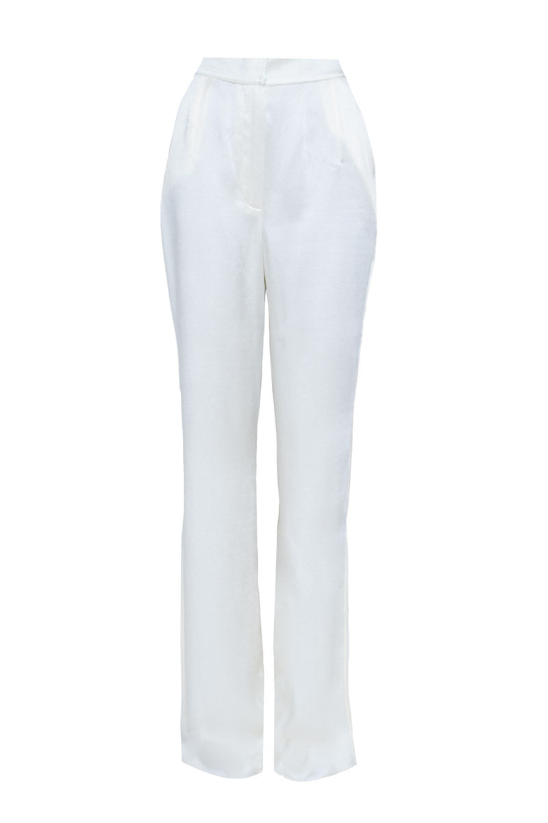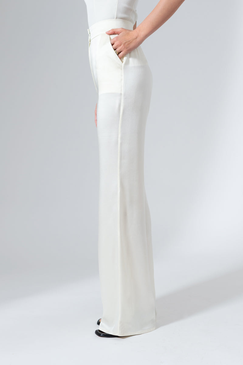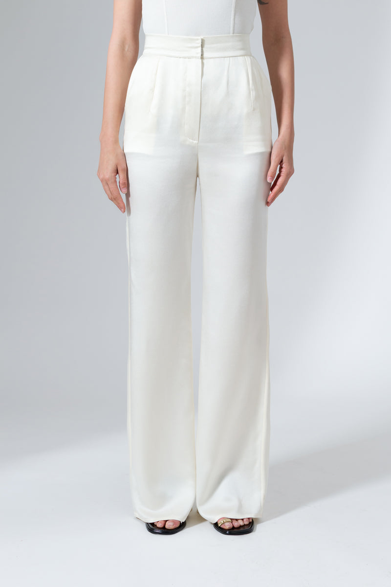 - High-waisted, wide-leg trousers