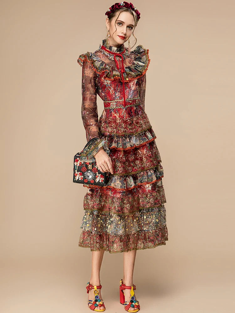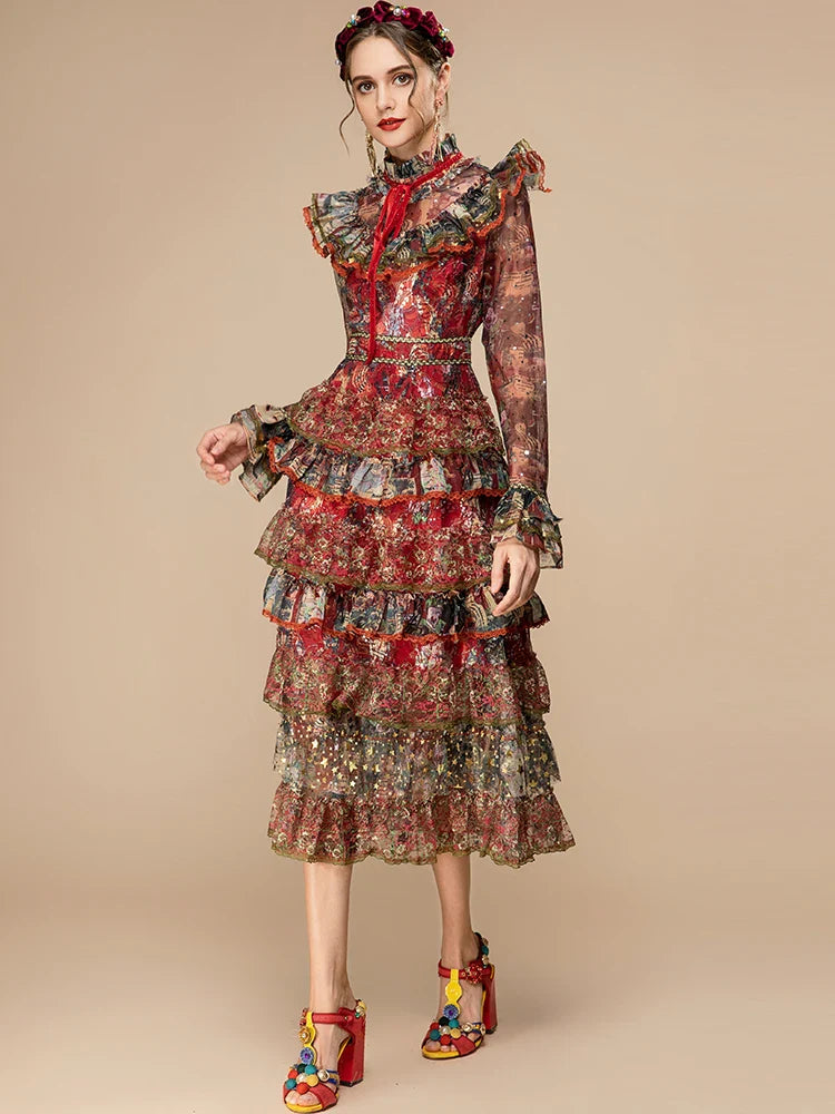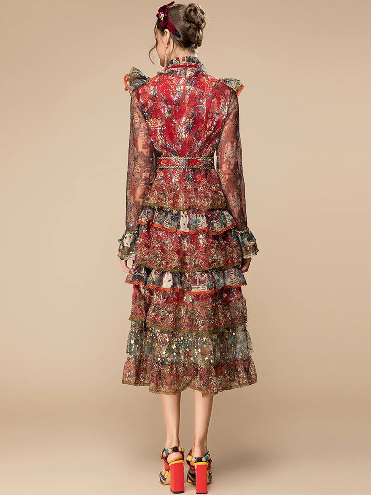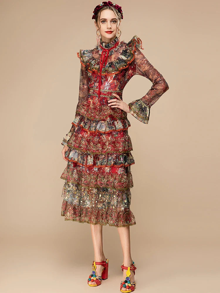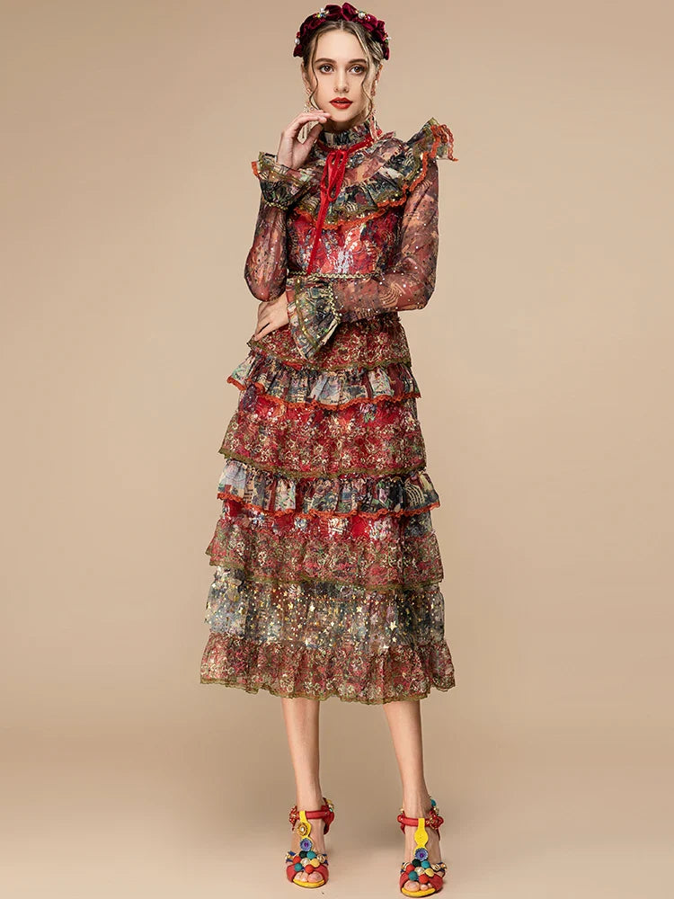 Tiered Ruffle Midi Dress Long Sleeve | Designer Style