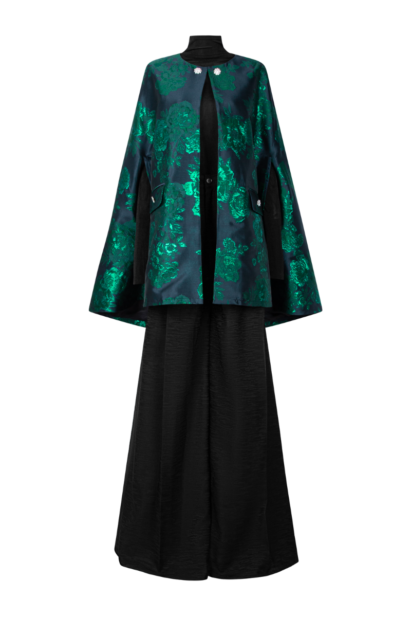 TURTLENECK LONG-SLEEVE TOP WITH WIDE-LEG TROUSERS AND CAPE SET