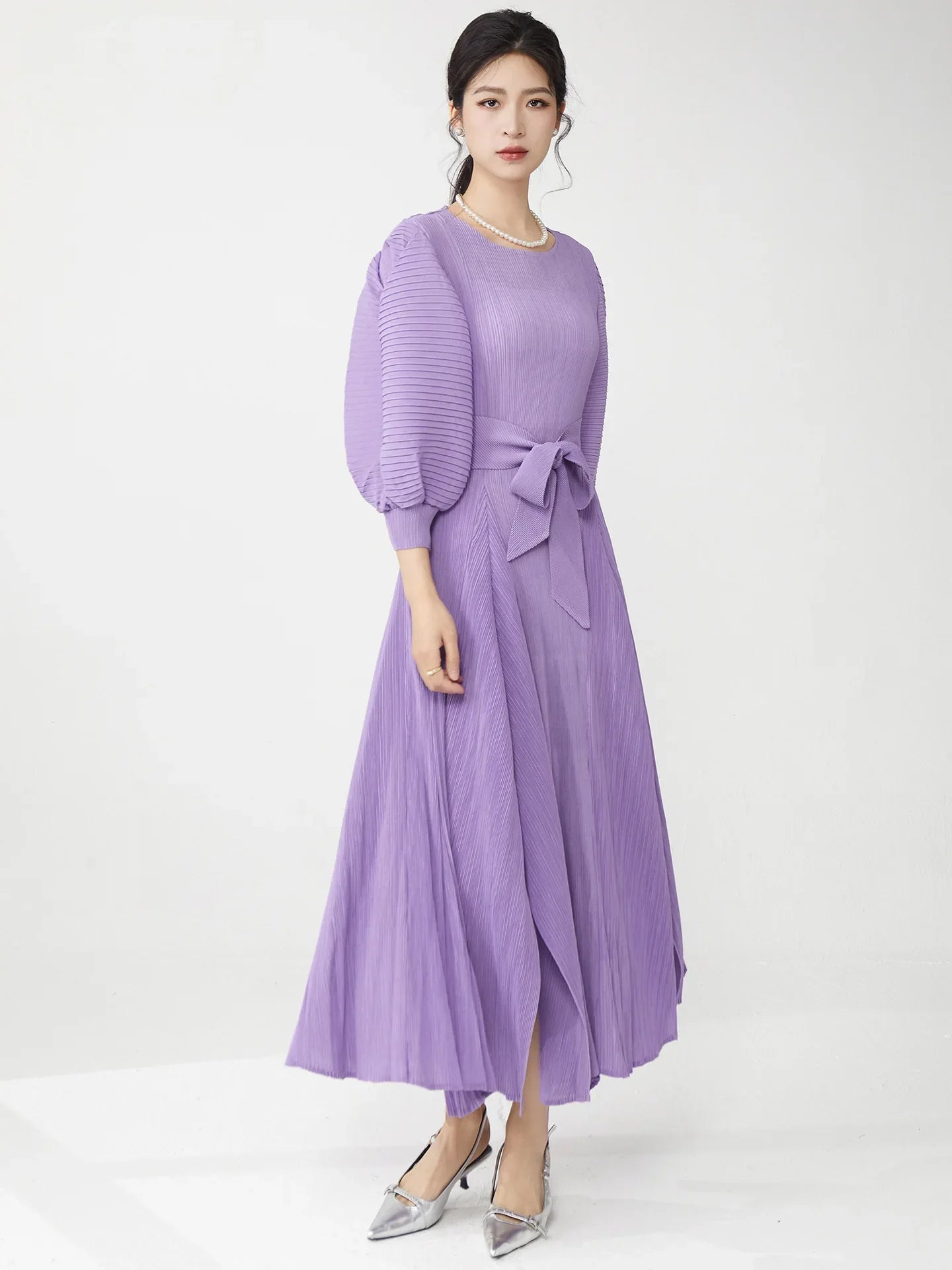 This Japanese pleated midi dress brings elegance and comfort together. With lantern sleeves, a loose yet flattering stretch fit, and a refined silhouette, it’s the perfect choice for weddings, business events, formal occasions, or stylish evenings out.
