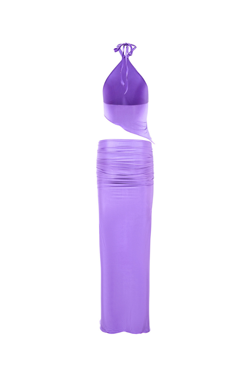 The Valeria set features a halter neck with self-tie closure and a finished hemline with a gently frayed edge. The skirt features a ruched design with an open slit in the middle. Crafted from figure-hugging stretchy fabric, it showcases a hand-finished hemline with a gently frayed edge. Made from high-quality swimwear fabric, it's perfect for a night out or a beach day.