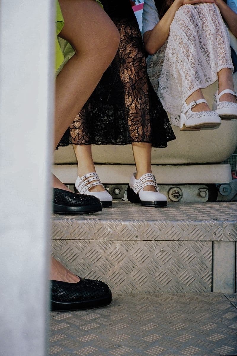 This elegant white Mary Jane flaunts a thick platform that's bedecked with little gems for a touch of bespoke glamour, all perched atop a sturdy rubber sole with a heel height of 5 cm.