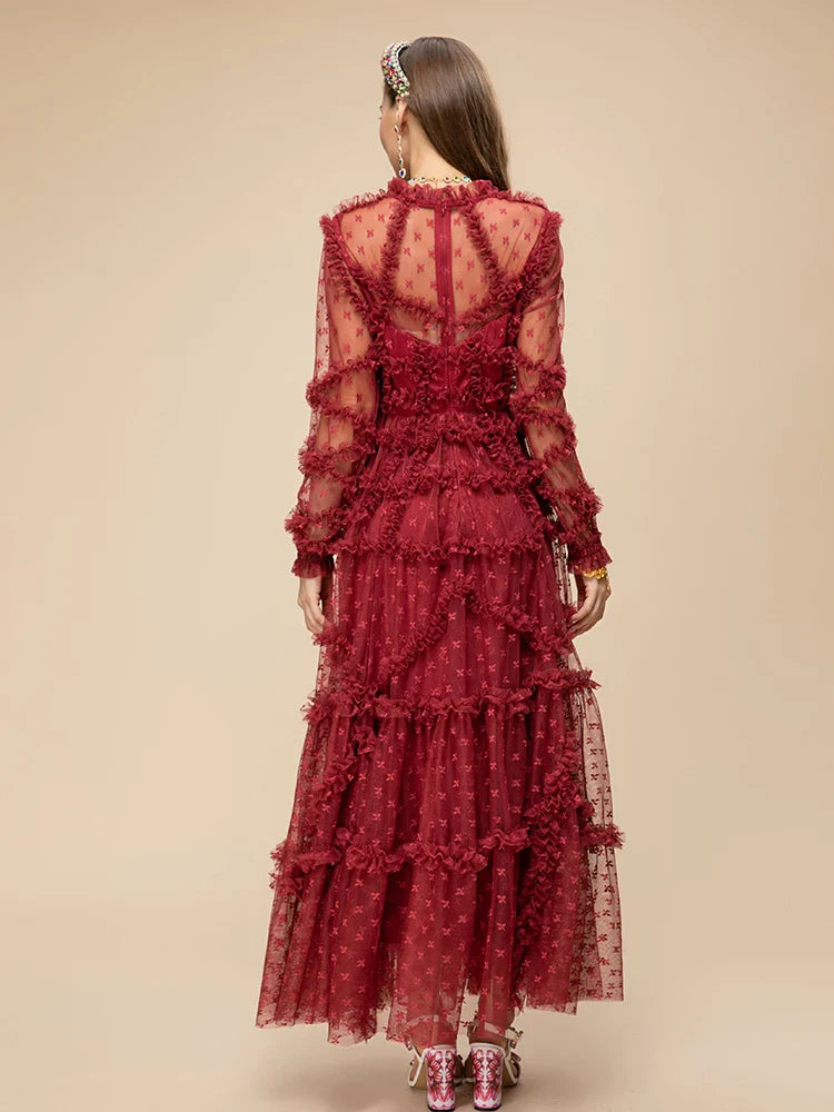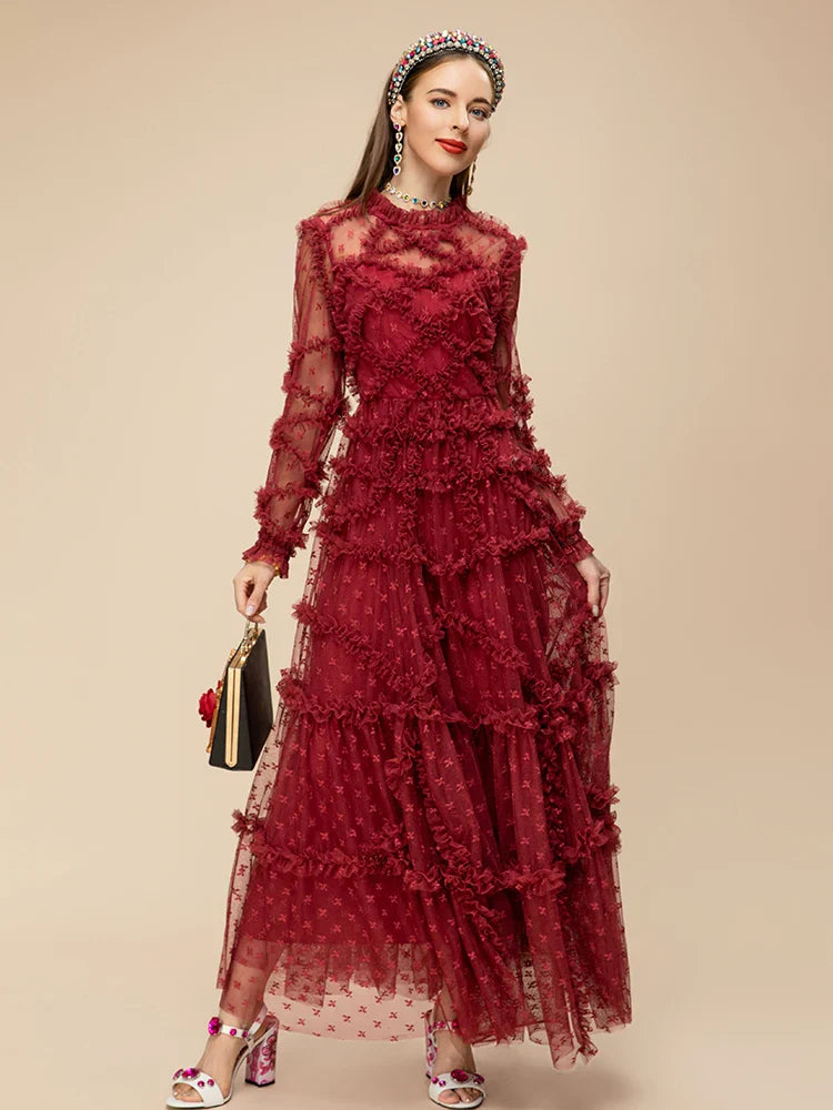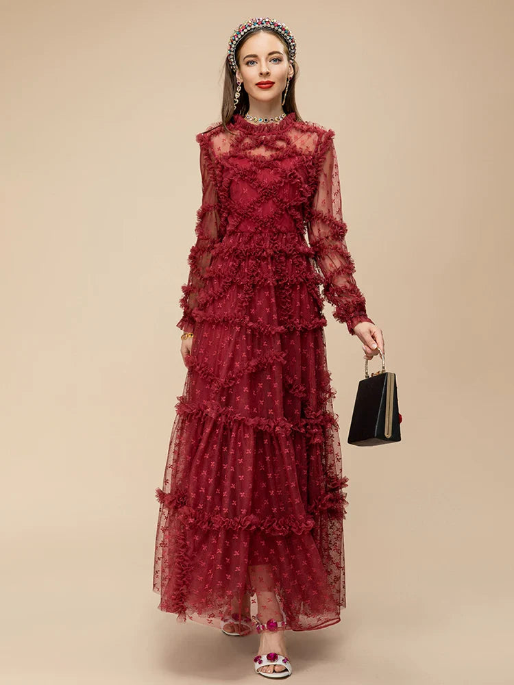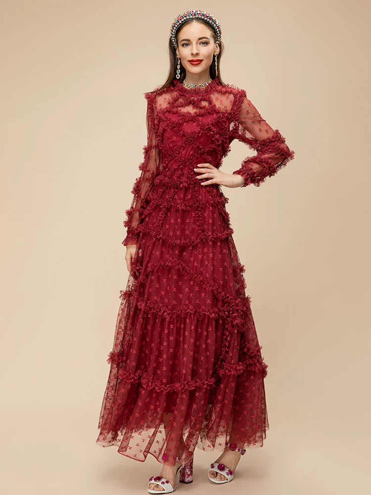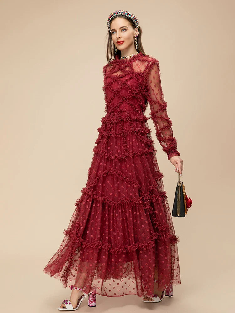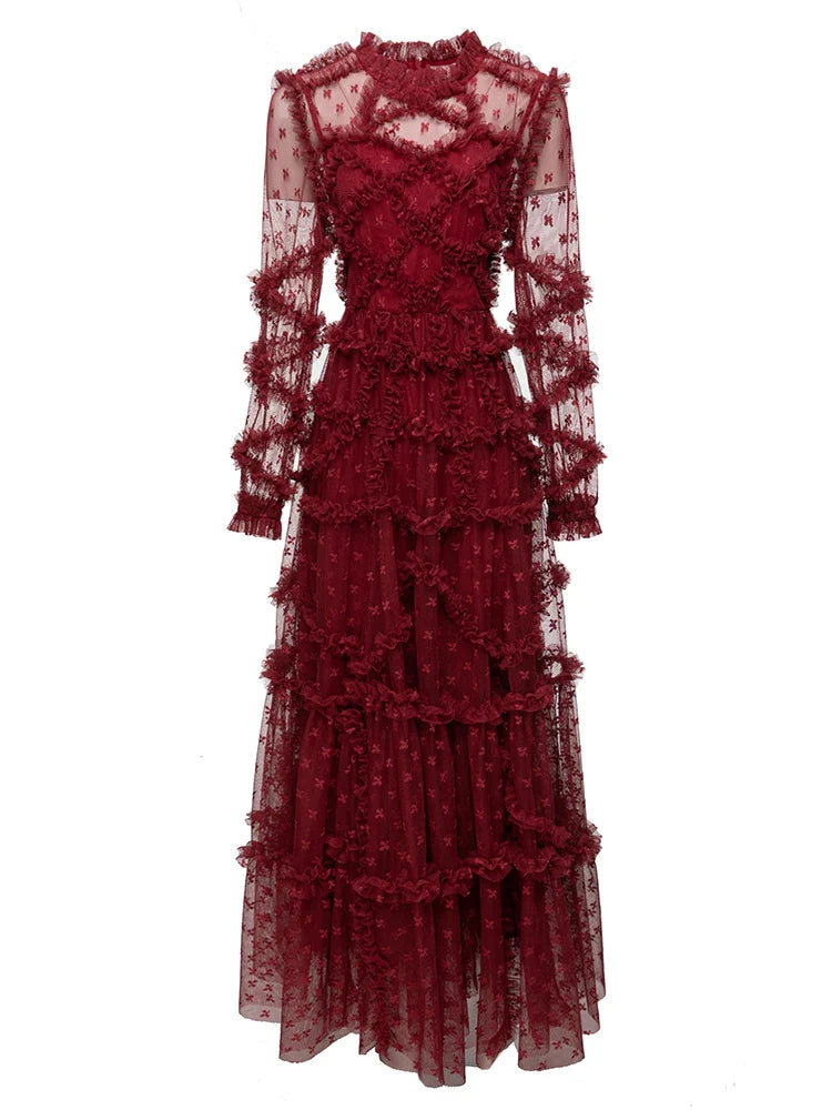 Looking for something romantic, classy, and head-turning for your next event? This wine red mesh midi dress is made for formal parties, weddings, or upscale dinners.