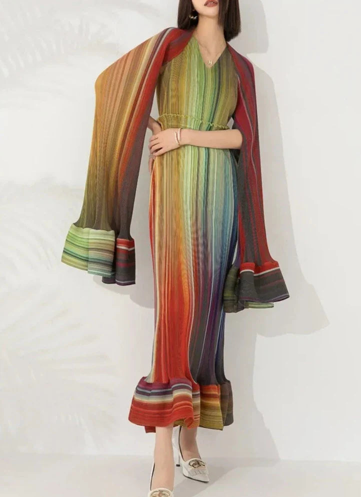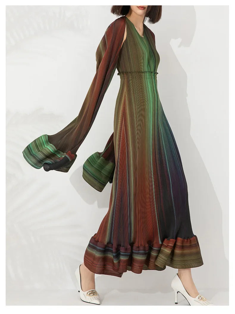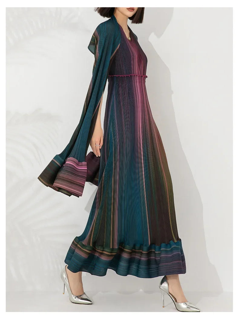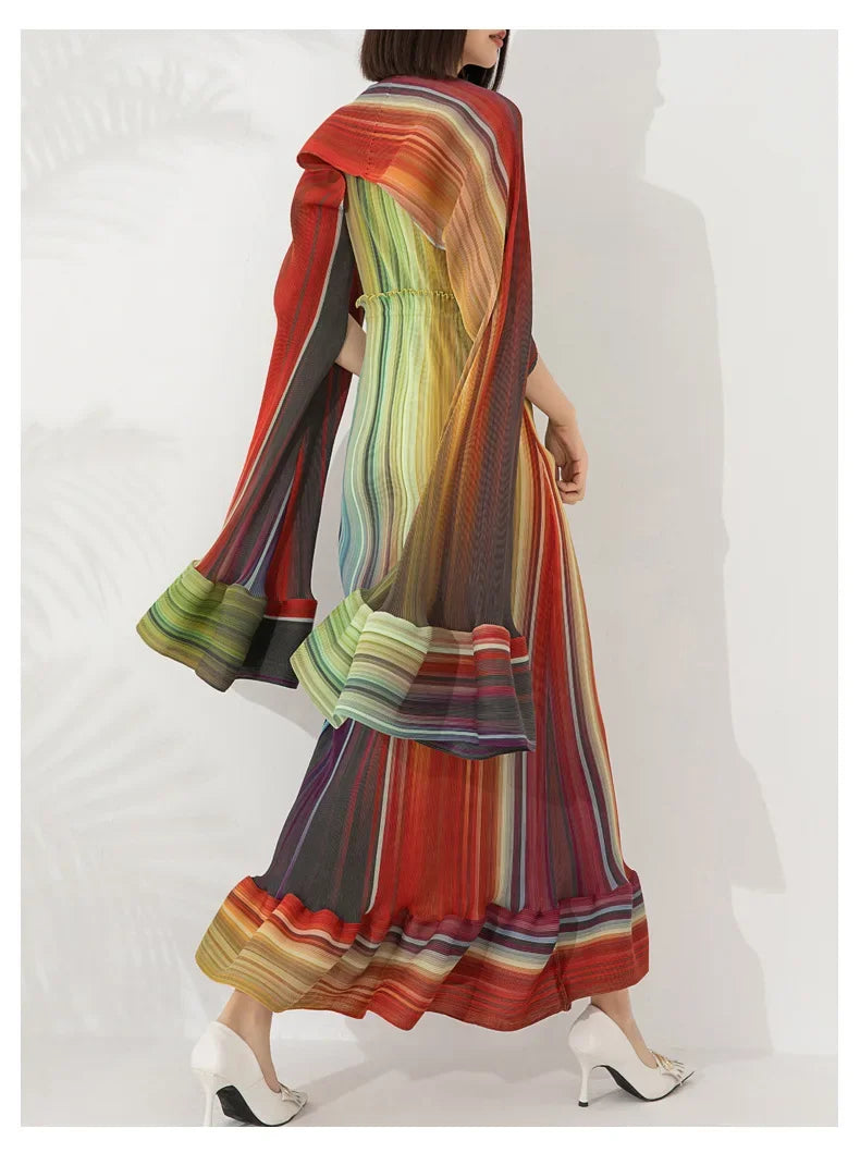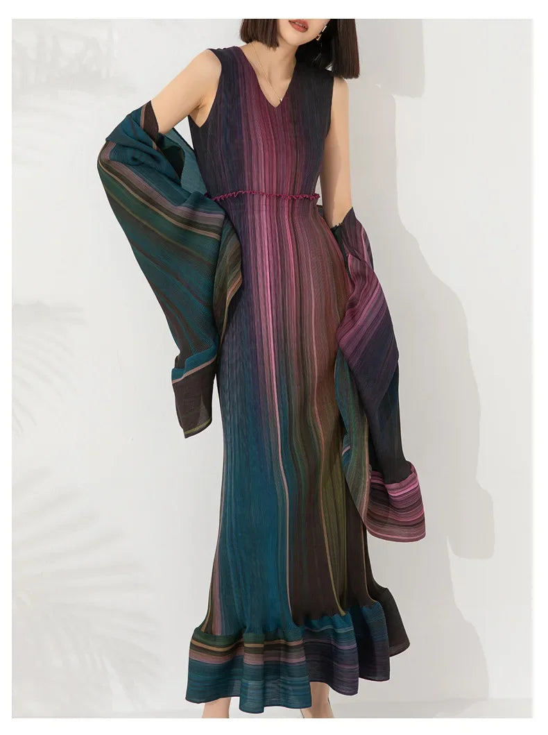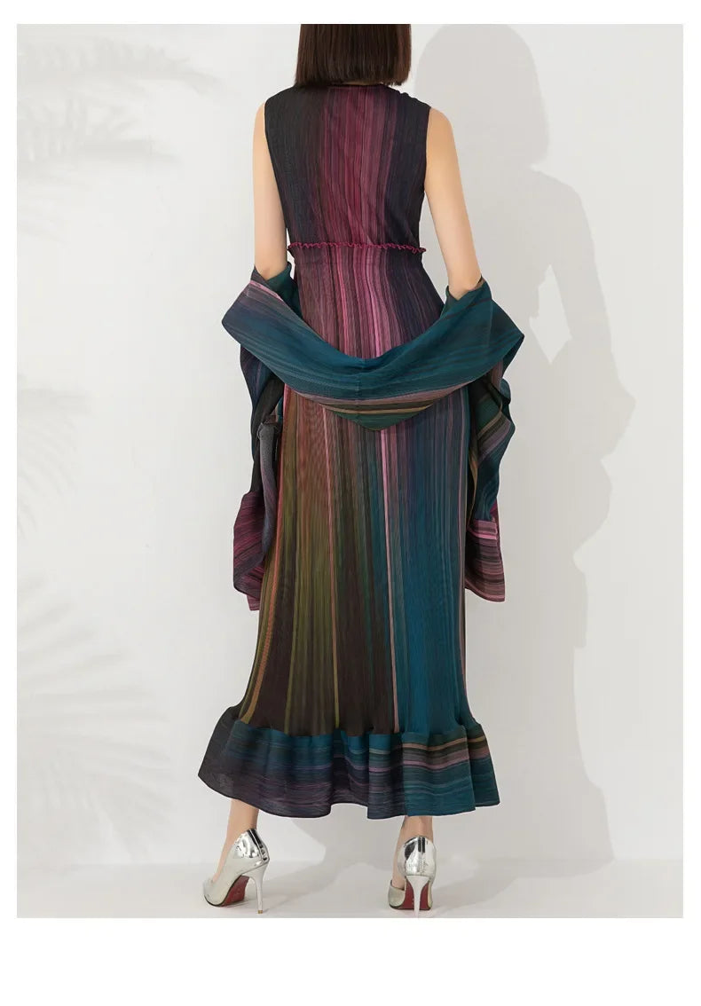 Discover the Women's Chic Pleated Sleeveless Midi Dress & Shawl Set, a testament to refined elegance and sophistication. This set features a sleeveless pleated midi dress and a matching shawl, both crafted from authentic Japanese pleated material in stunning, elegant colors.