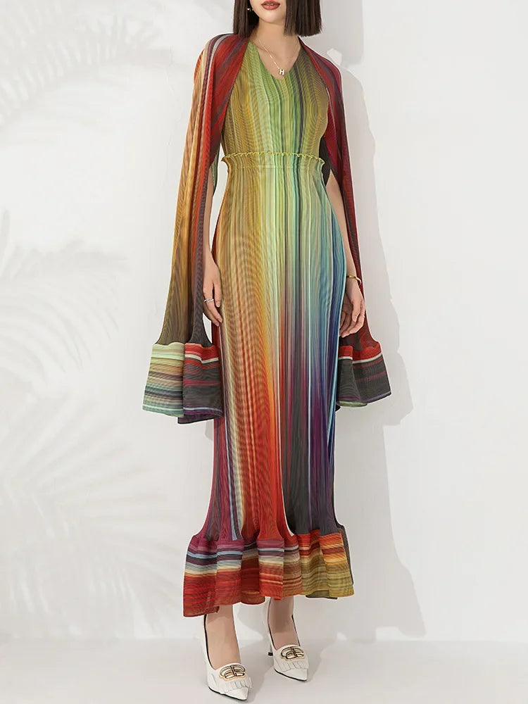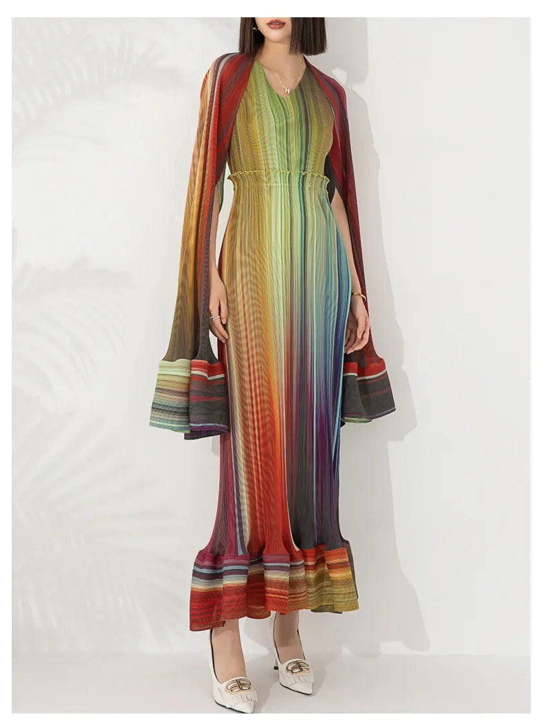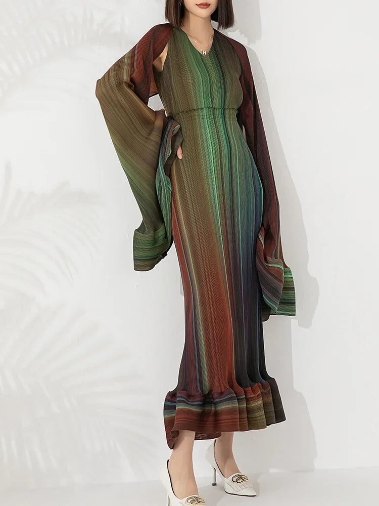 Women's Chic Pleated Sleeveless Midi Dress & Shawl Set