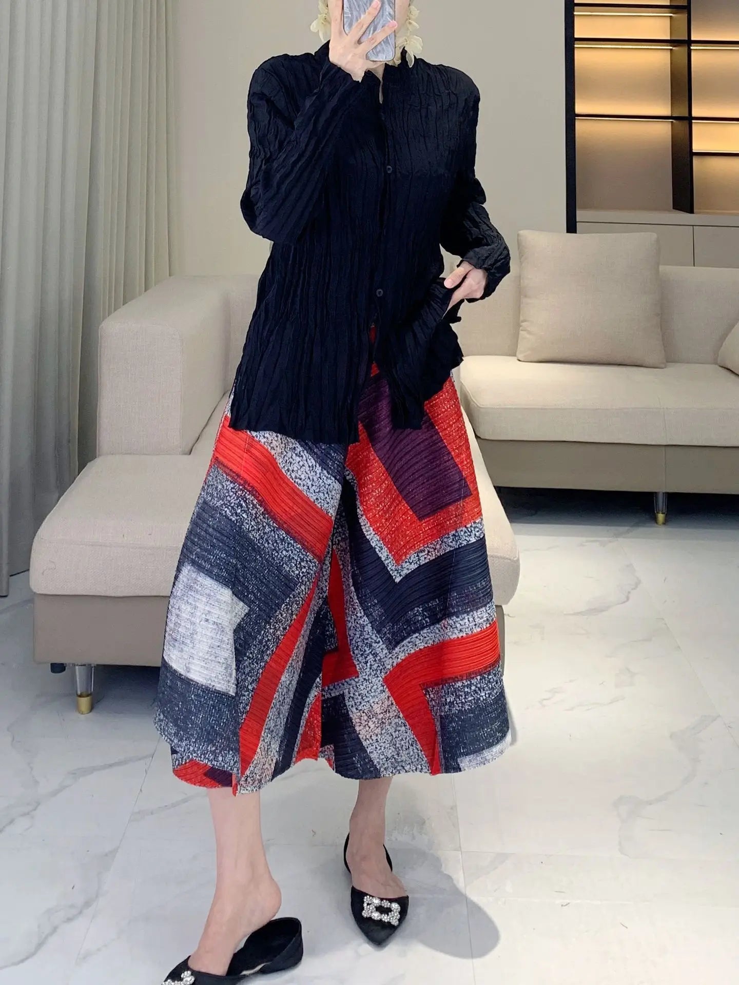 Japanese plissé culottes with a loose, flattering fit that’s comfortable all day. Easy to style for work with a blouse, casual weekends with a tee, or evenings out with heels.