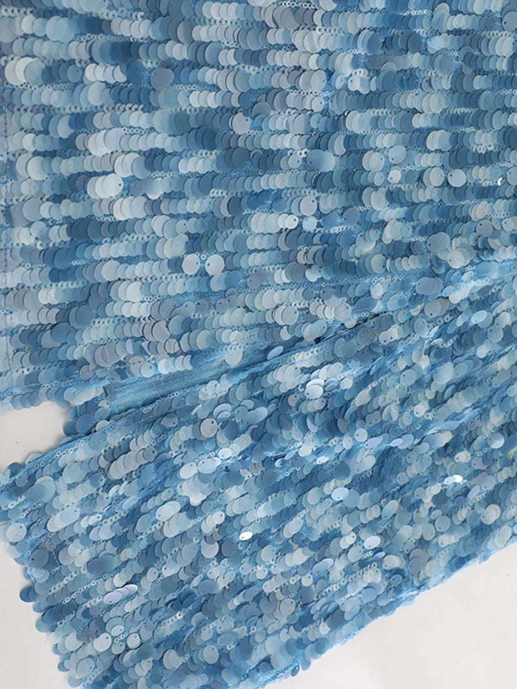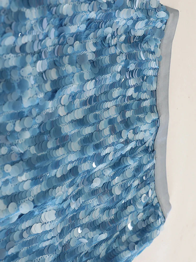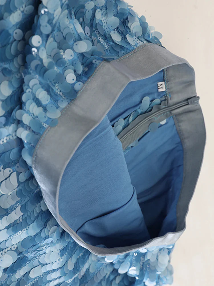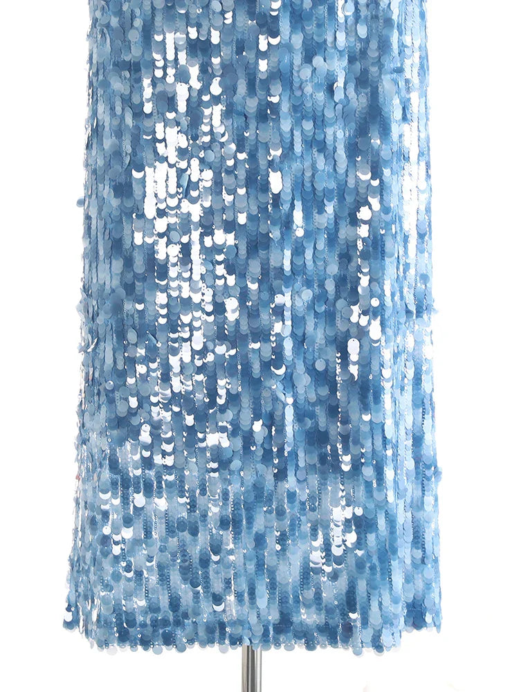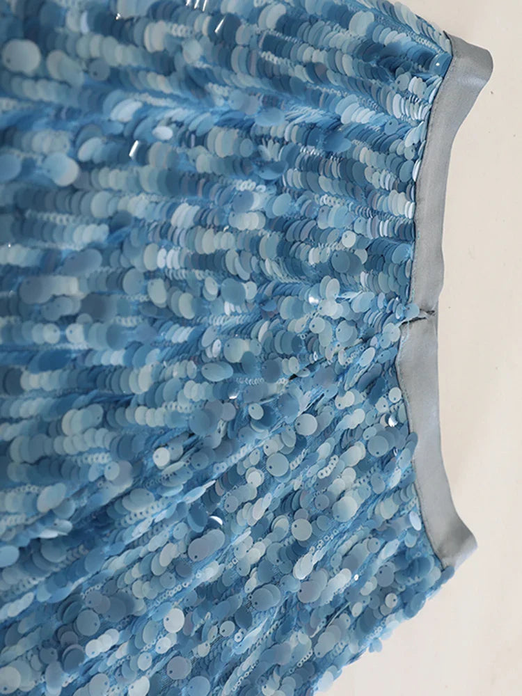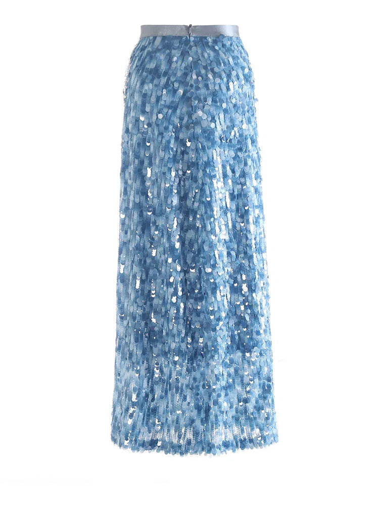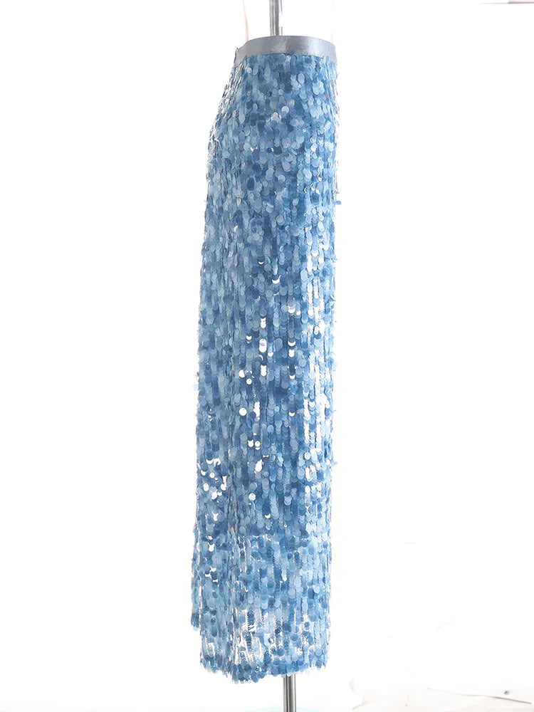 This straight midi skirt shines with premium sequin fabric that catches the light from every angle. Designed for an elegant fit, it hugs the hips and falls cleanly to a flattering midi length.