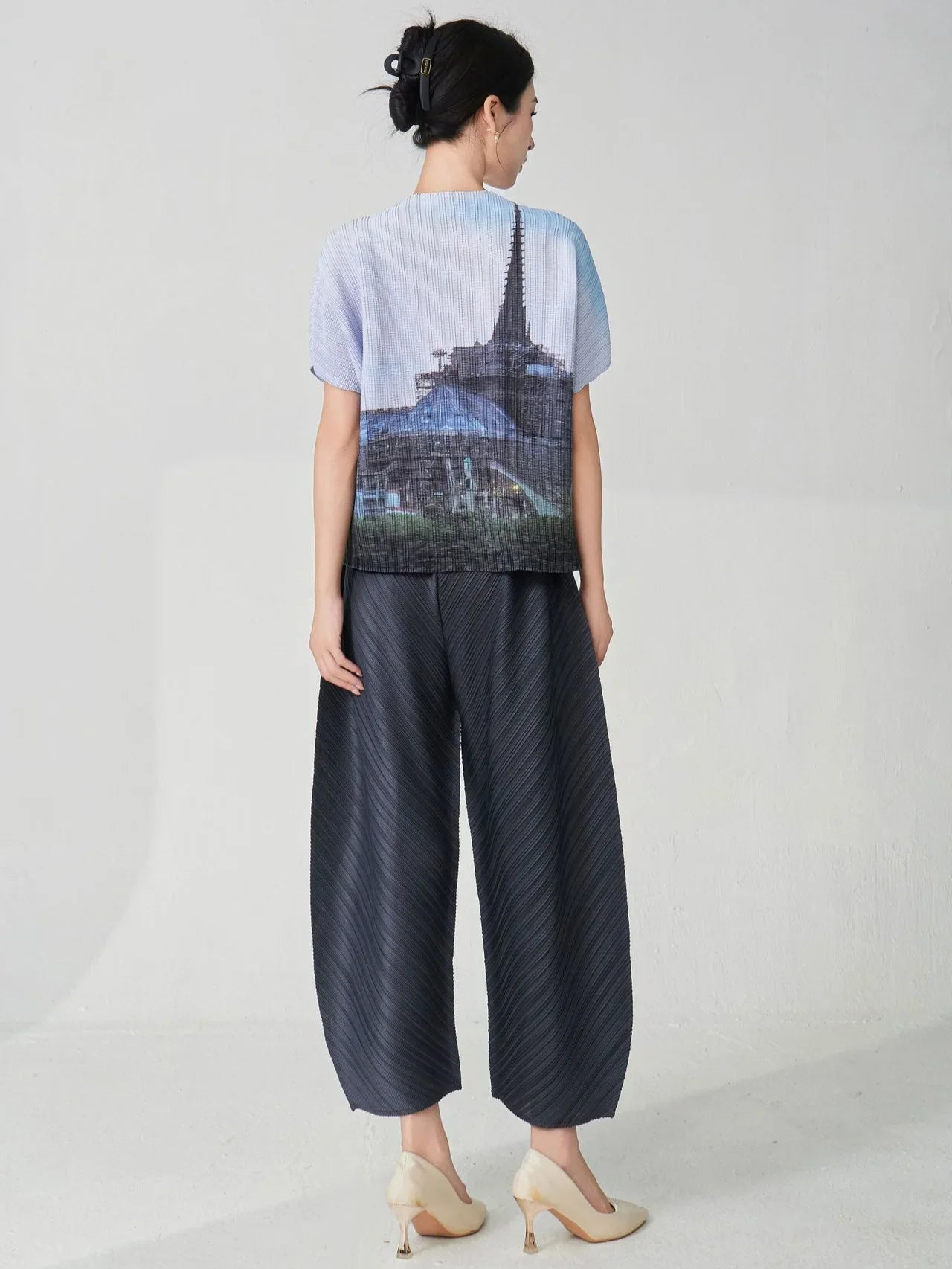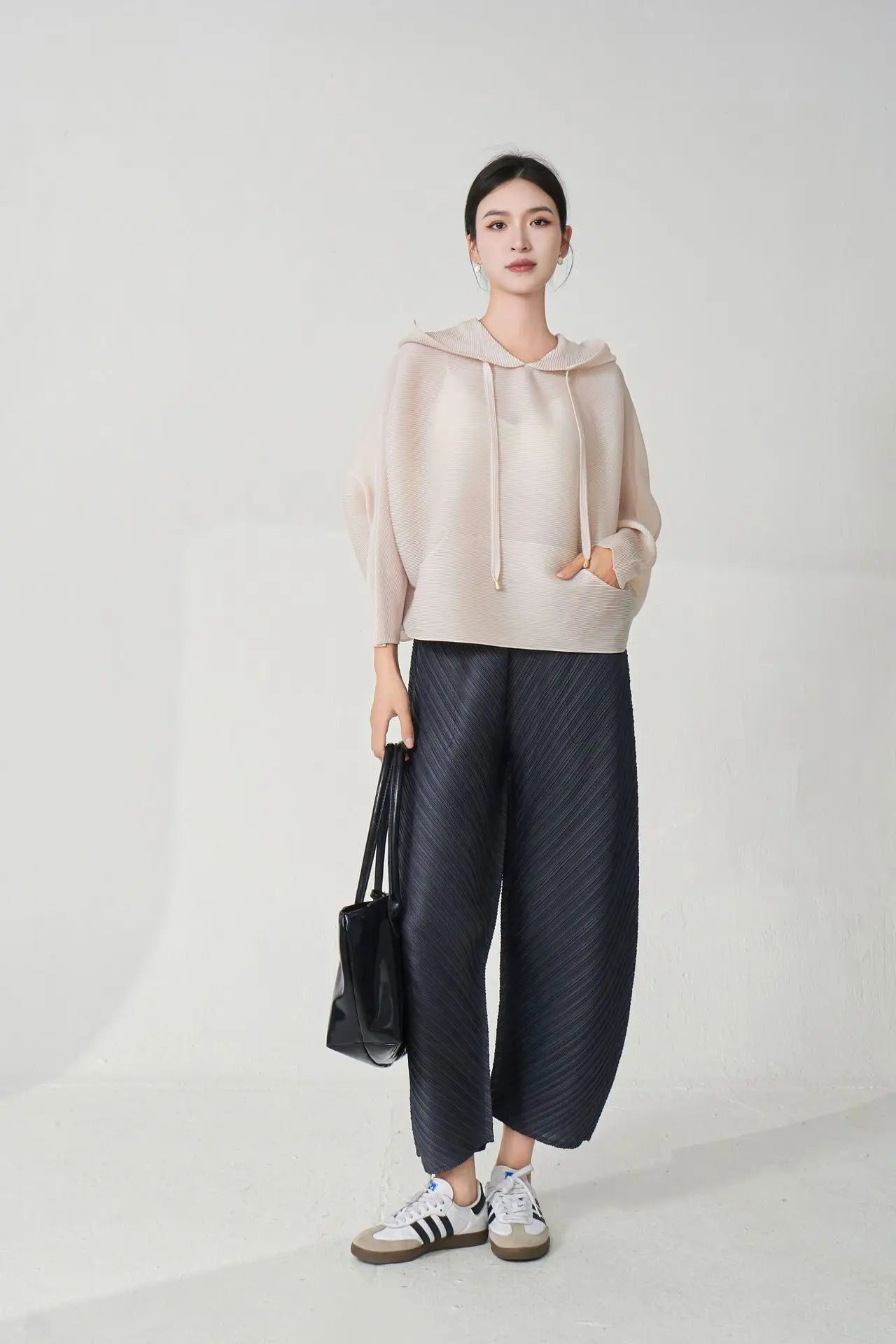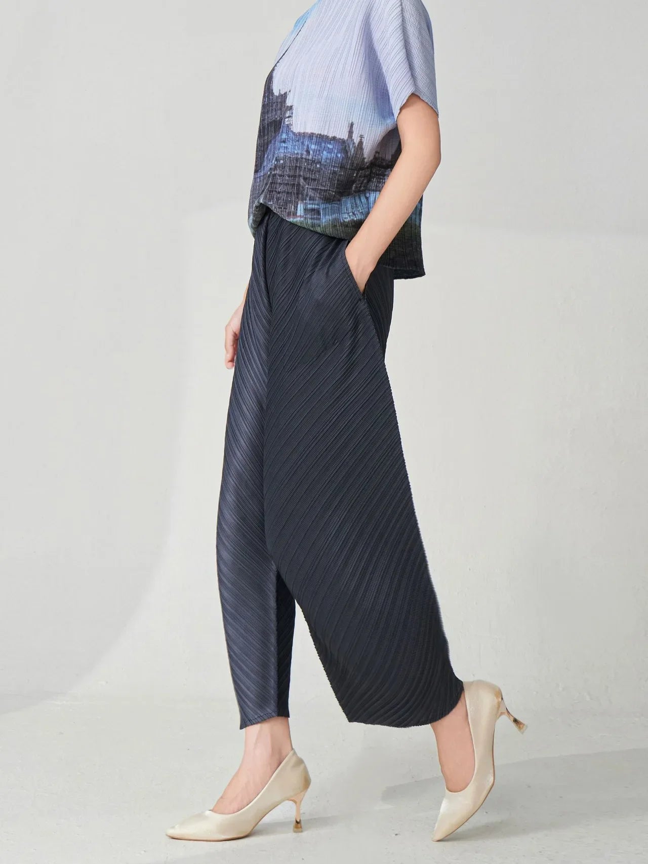 These luxe palazzo pants feature premium Japanese pleats and a unique wide-leg shape. The elastic waistband ensures comfort, while the stylish design offers a luxurious look for everyday or special occasions.