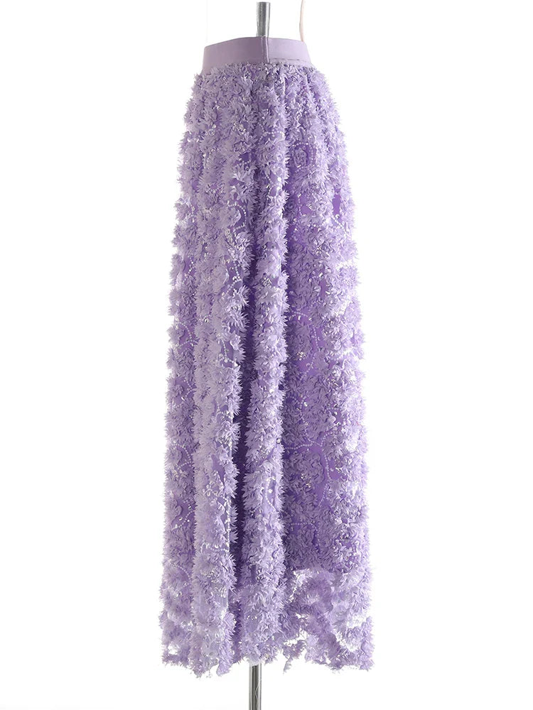 Delicate lace brings luxury and texture to this elegant midi skirt. The elastic waistband offers comfort and an easy pull-on fit, perfect for any occasion.