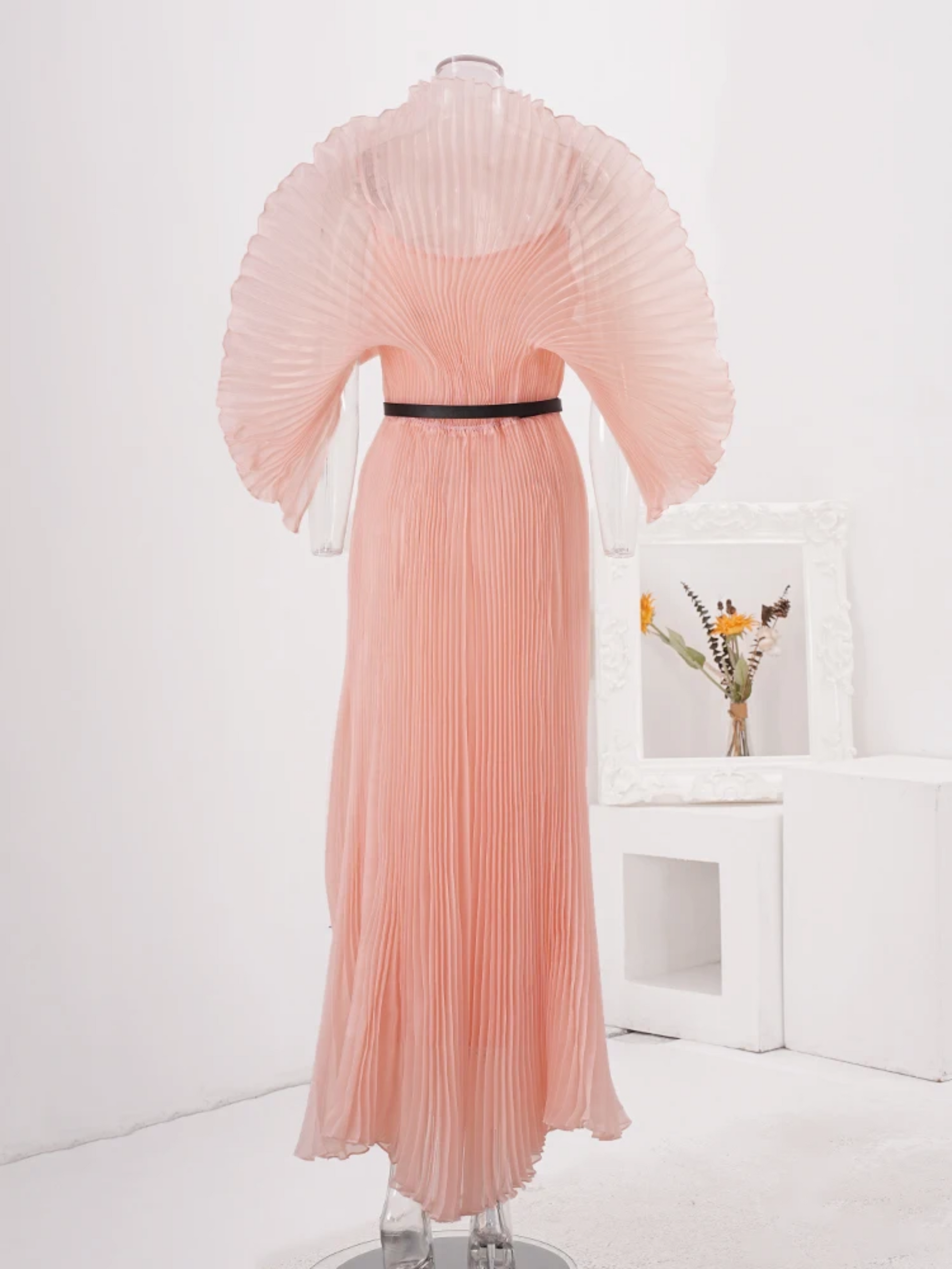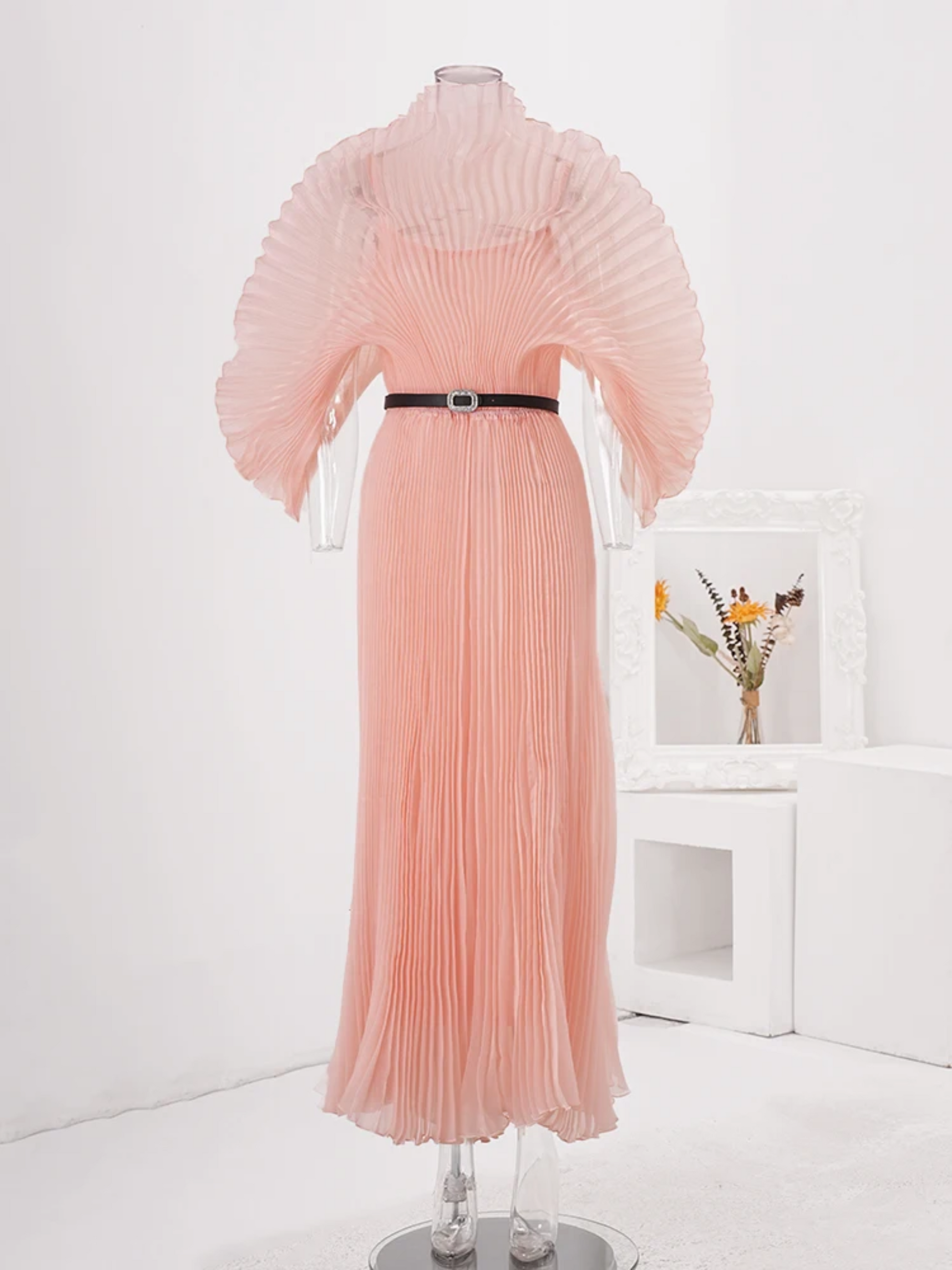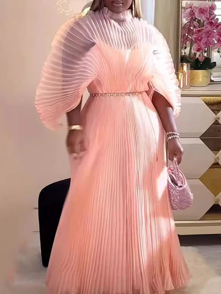 Unveil timeless elegance with this maxi dress, designed to make an impression. Featuring luxurious pleated fabric and dramatic puff-up shoulder sleeves, this dress combines modesty and style effortlessly.
