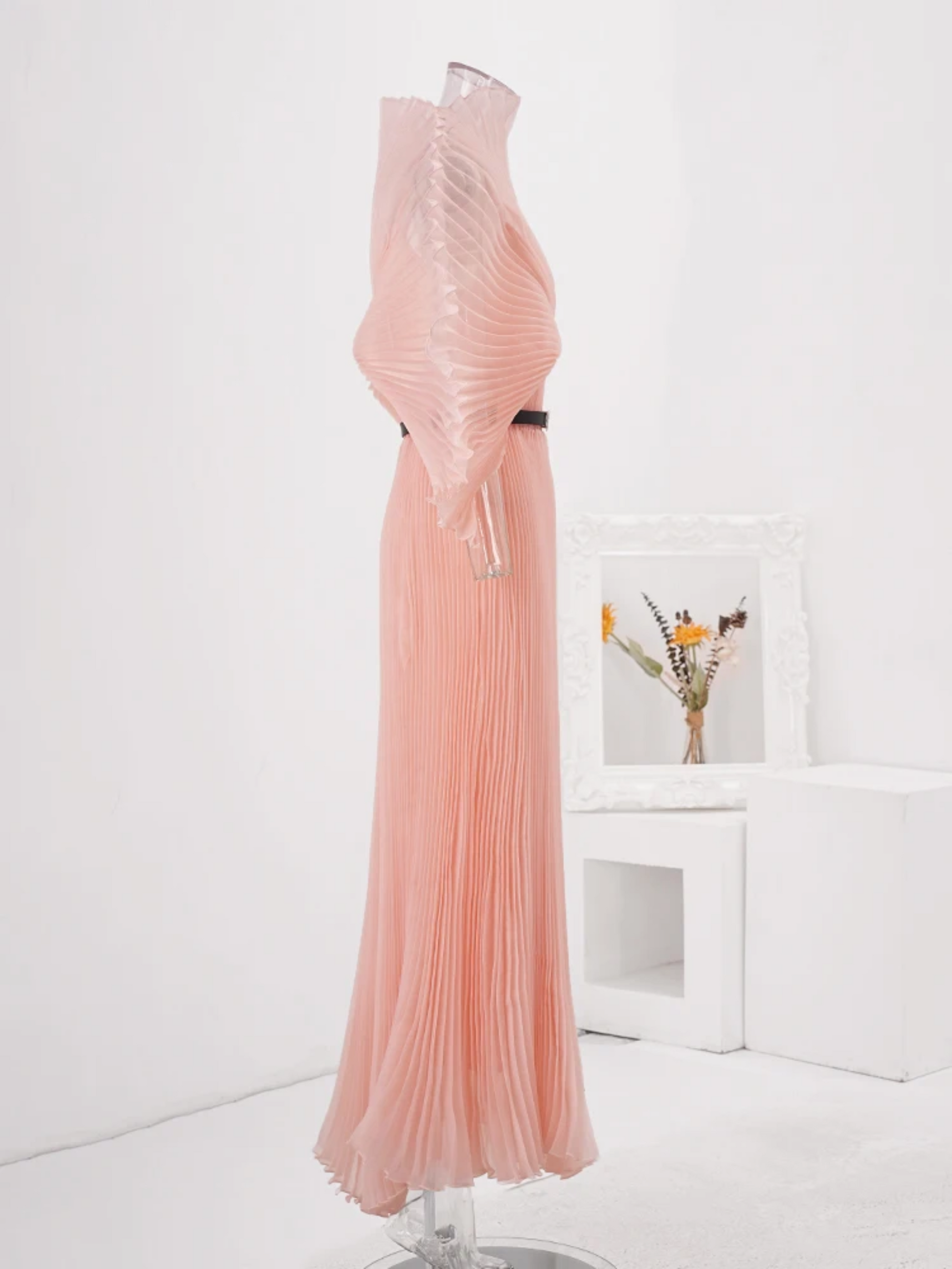 Women's Pleated Maxi Dress | Elegant Puff Up Sleeves