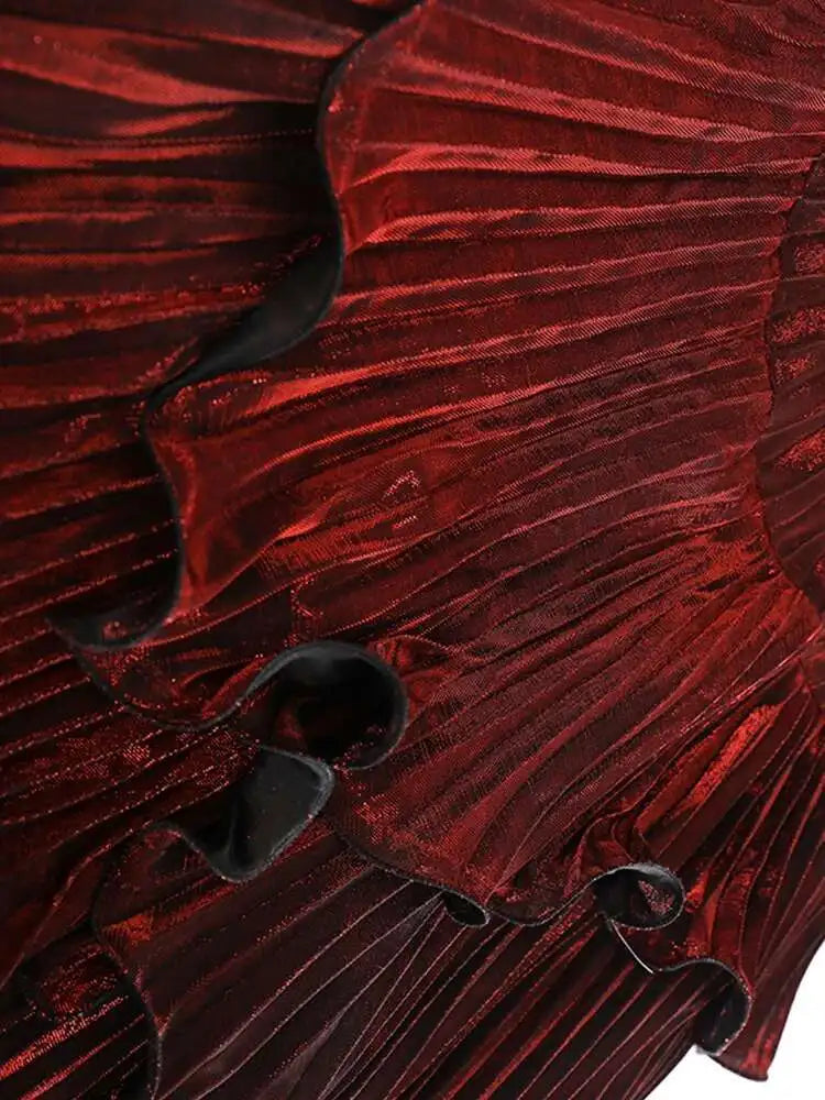 Tiered design with a metallic sheen. This tailored midi skirt features an elastic waistband for comfort and a structured silhouette for impact—made for standout evenings.