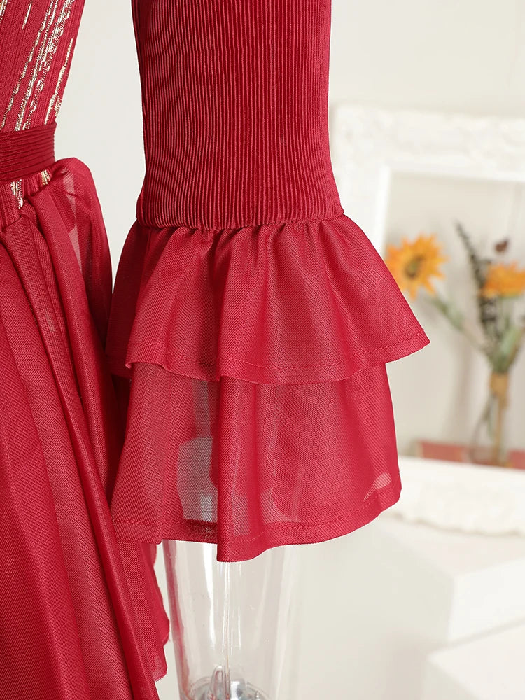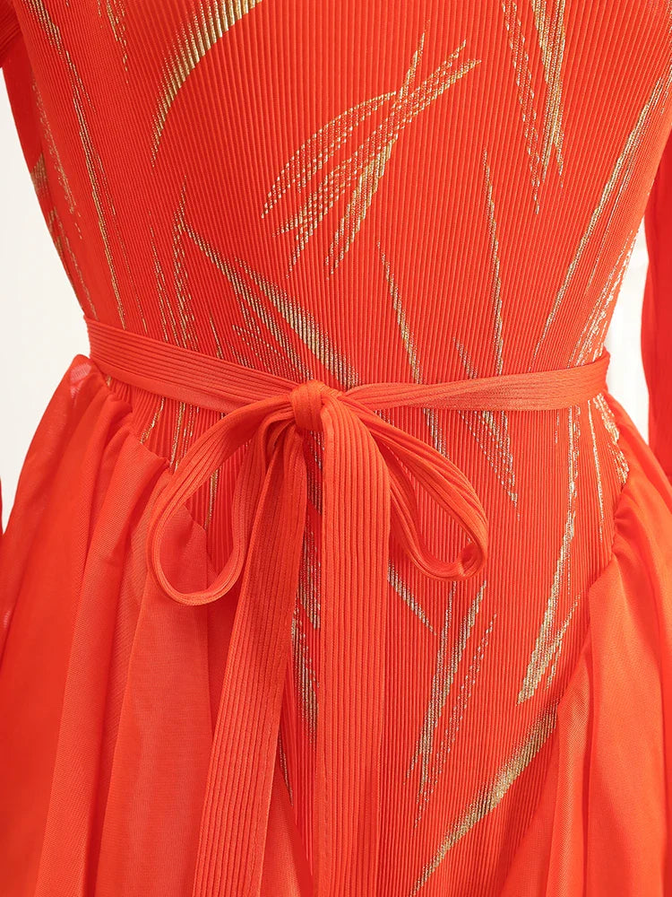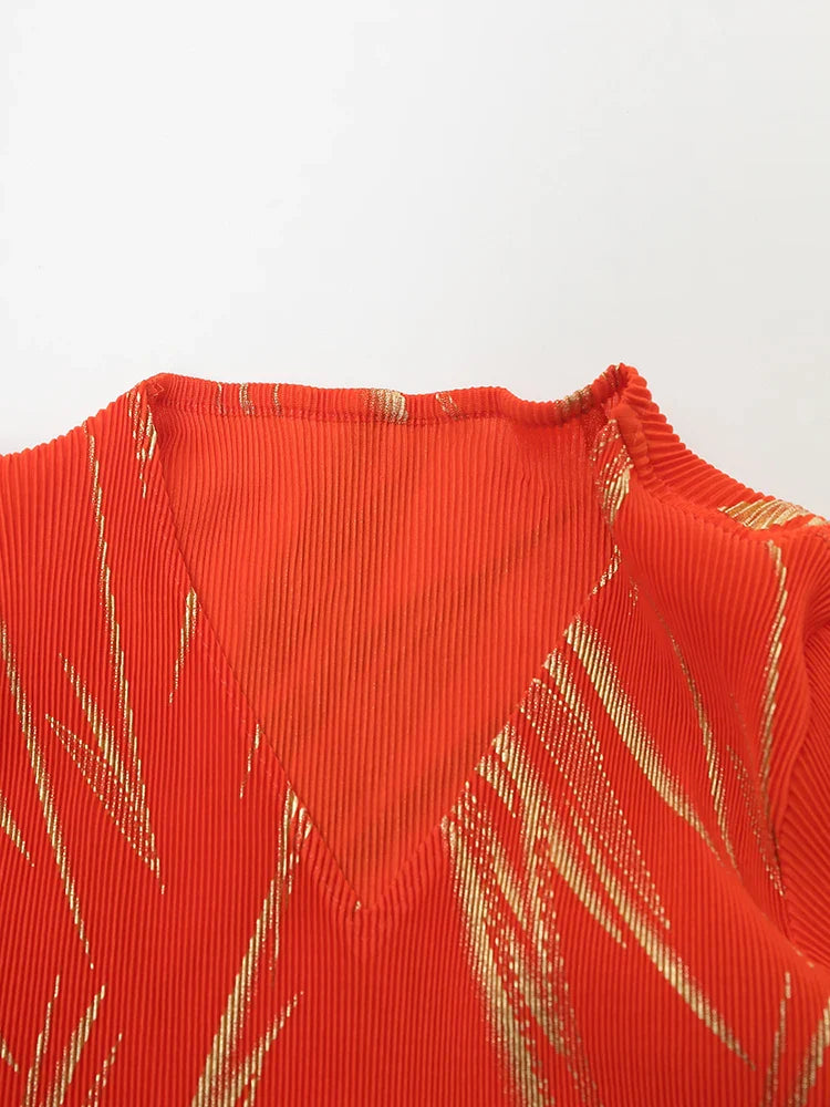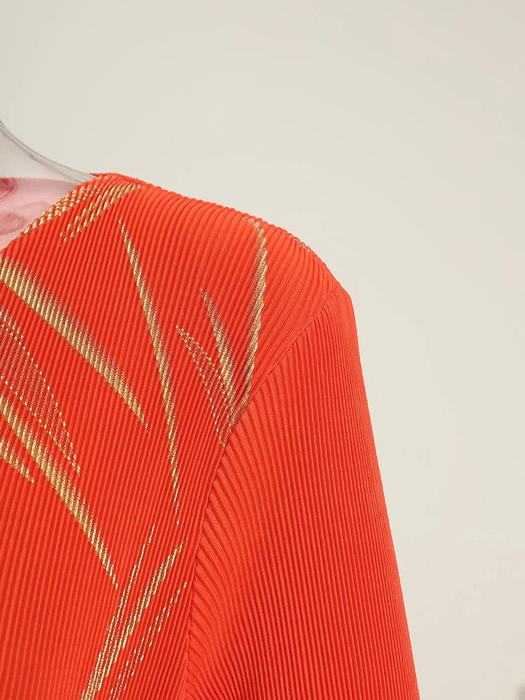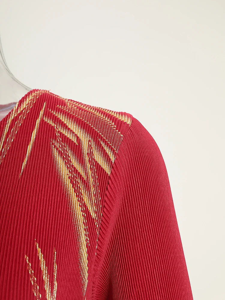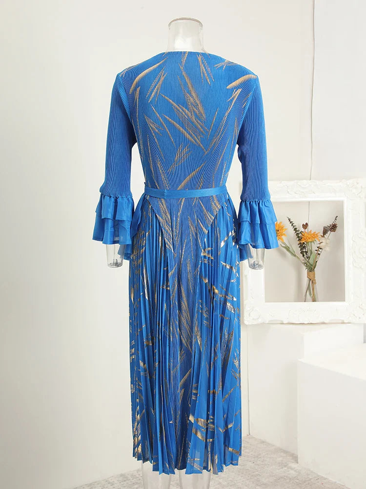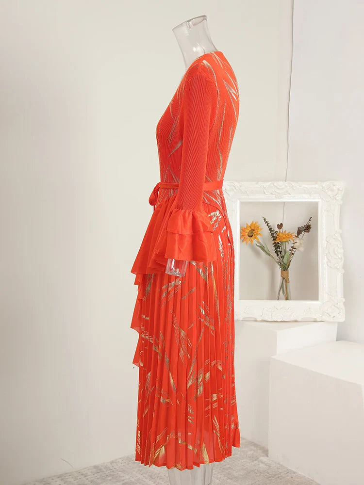 This midi dress features structured Japanese pleats and soft ruffle details, offering a balanced silhouette that moves with ease. Designed for modest styling and a flattering petite fit, it transitions well from day events to evening occasions.