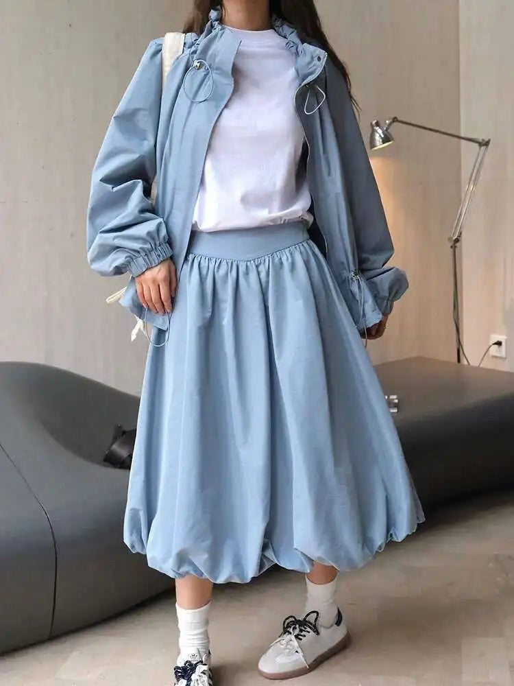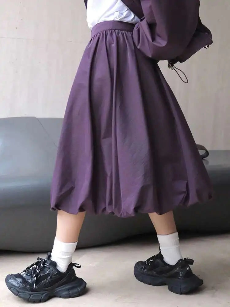Voluminous shape meets minimal edge. Designed with a full silhouette and elastic bubble hem, this skirt moves with intention while keeping its structure. Ideal for curated wardrobes, statement outfits, or anyone tired of the usual.