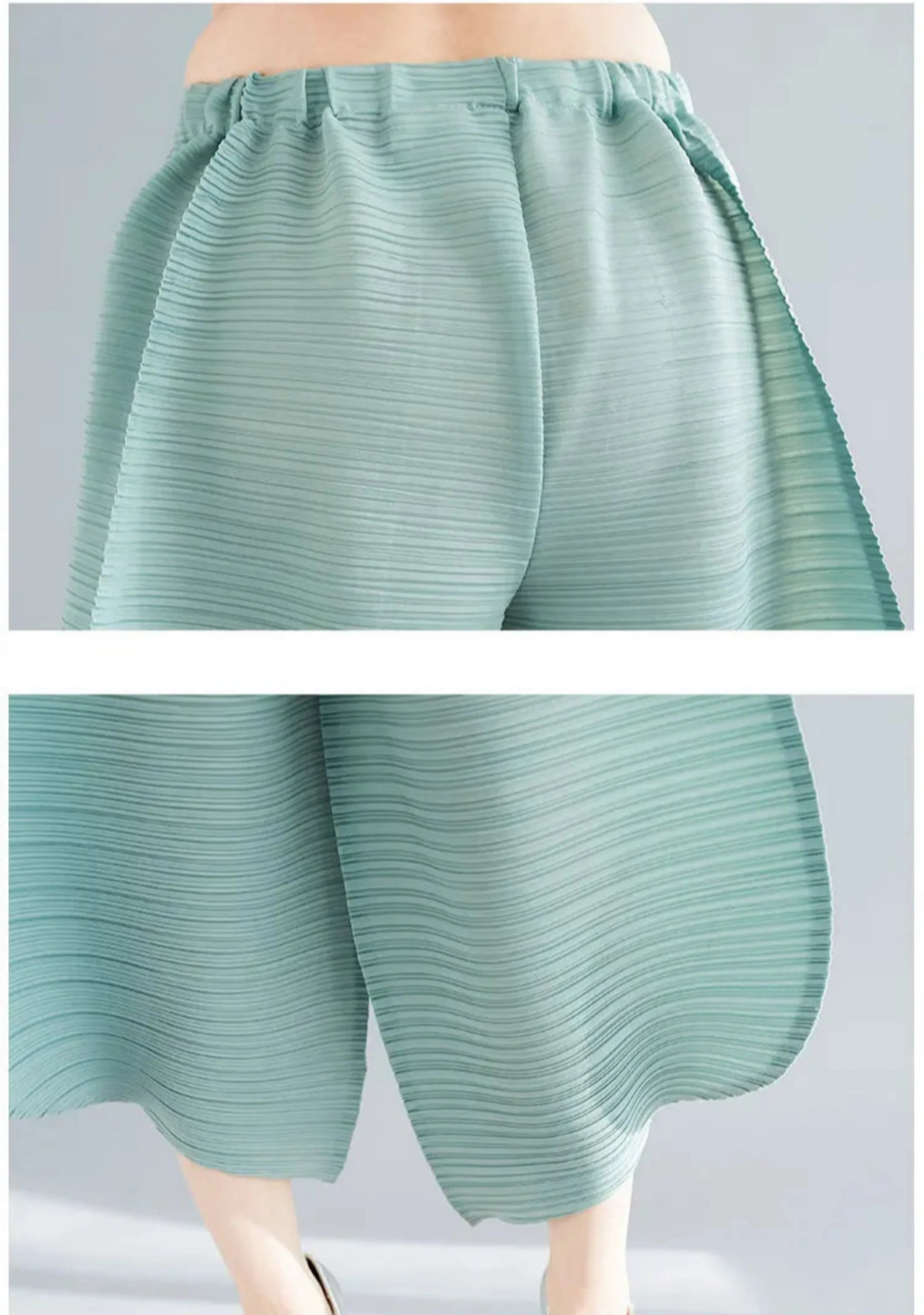 Designed for comfort and style, these relaxed-fit trousers feature authentic Japanese plissé pleats with a flattering pull-on high waist. Perfect for both casual days and formal occasions.