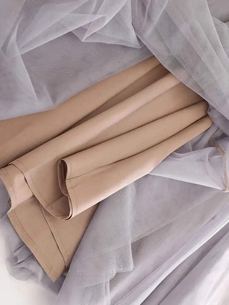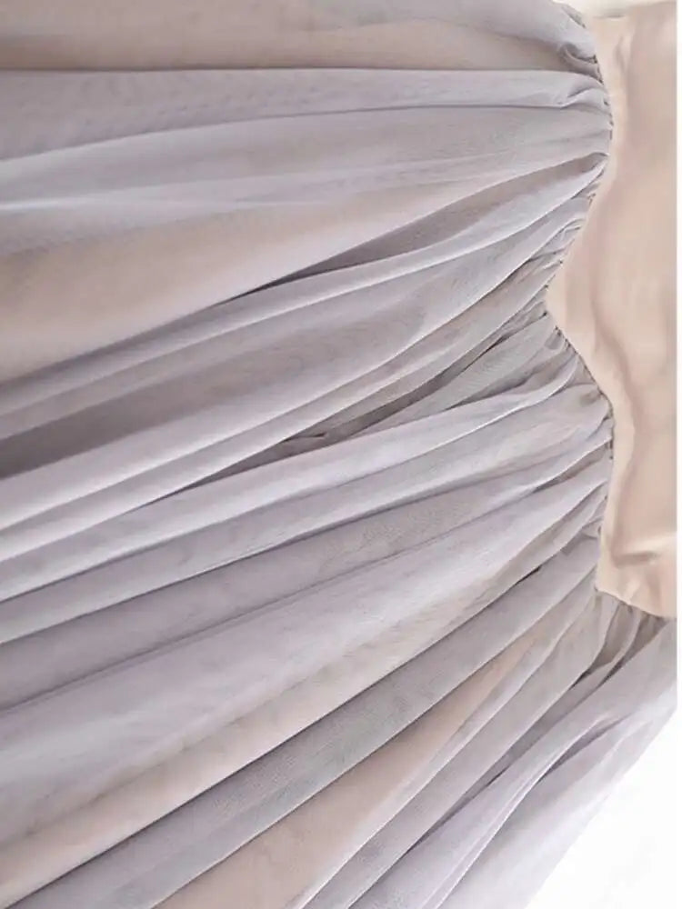 This satin midi skirt blends sleek structure with soft drama. A slim silhouette hugs the body while a sheer tulle overlay adds dimension. Made to turn heads at evening events.