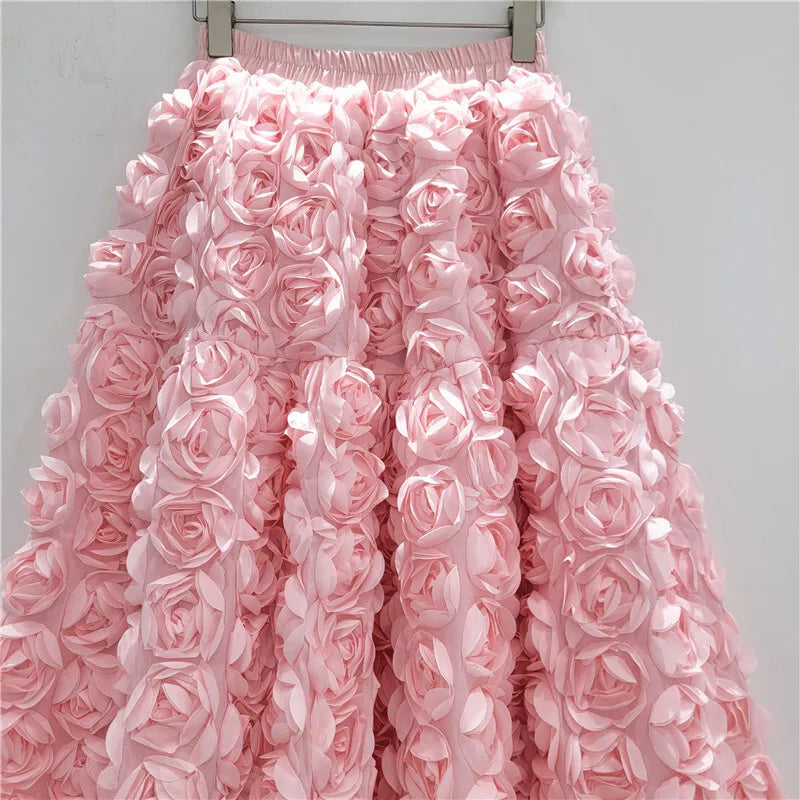Designed to turn heads, this romantic midi skirt is a statement piece for women who embrace artistry in fashion. With soft tulle layers and a lifelike 3D handmade rose blooming at the waist, it’s made for wedding guests and special moments.