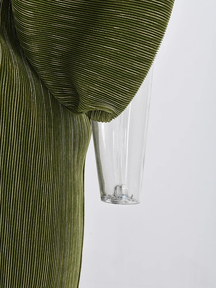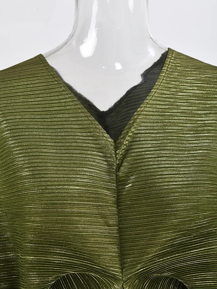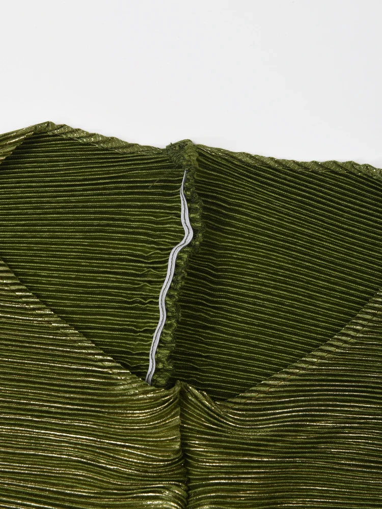 The pleated design flows beautifully, making it an ideal choice for both casual gatherings and more formal events.