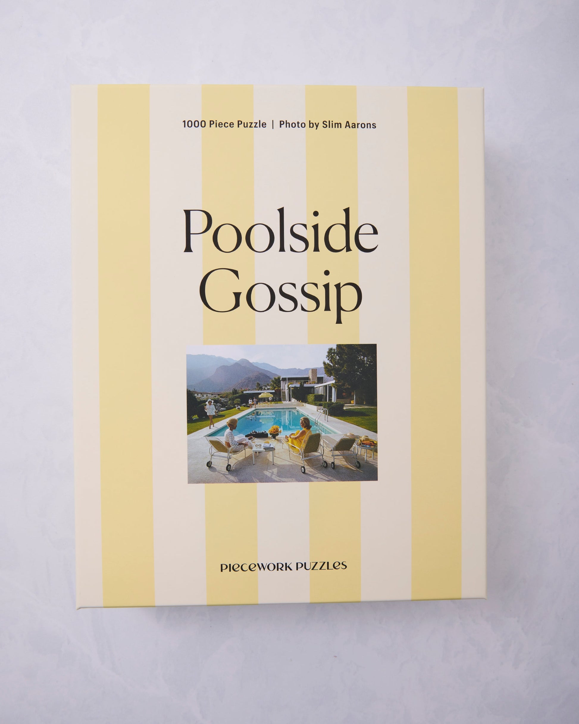 - Featuring Slim Aarons' best-known photograph, Poolside Gossip is widely revered as the quintessential image of midcentury style and design. Packaging features a show-stopping cabana stripe.